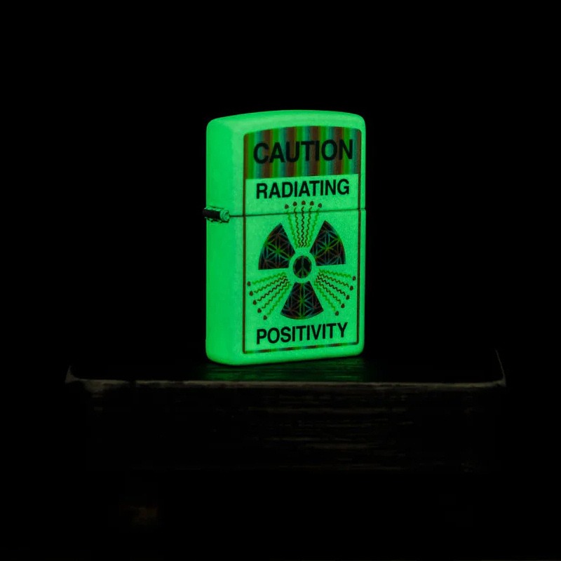 - Caution: this classic Glow-in-the-Dark lighter might make you smile. The vibrant Color Image design features a “warning” that radiates positivity. Plus, the whole lighter glows in the dark thanks to our specialty finish! Comes packaged in a gift box. For optimal performance fill with Zippo lighter fuel.
