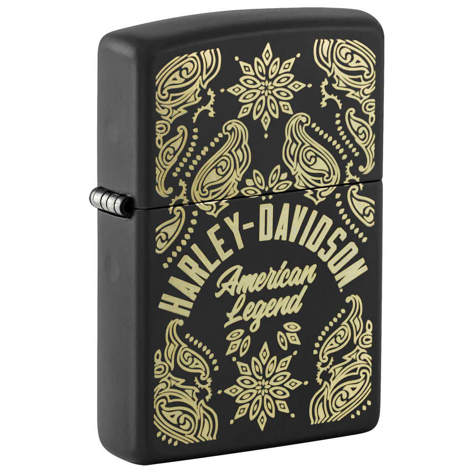 • A true American Legend, Harley-Davidson adorns this classic Black Matte lighter among intricate paisley and filigree in a stunning Laser Engrave design. Comes packaged in a gift box. For optimal performance fill with Zippo lighter fuel.