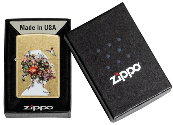 - World-renowned artist Steven Spazuk creates his unmistakable art with smoke and flames in a technique known as “fumage.” From a series that masterfully blends flora and fauna with the human form, his piece, Hummingbirds, is replicated in stunning detail on this classic Street Brass lighter in a vibrant Color Image design. Comes packaged in a gift box. For optimal performance fill with Zippo lighter fuel.